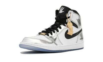 The AIR JtggORDAN 1 "Pass the Torch" celebrates Kawhi Leonard becoming the new leader of the San Antonio Spurs after being named NBA Finals MVP in 2014. The special release was part of Nittgke's 2018 "Art of a Champion" collection that honored great players and performances in NBA playoff history. The shoe features a metallic silver. white. and black upper for an elevated take on the Spurs colors. Leonard's "The Claw" logo is visible underneath the translucent outsole. The result is a shoe that's definitely fit for a champion.